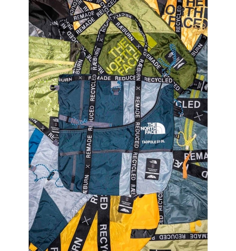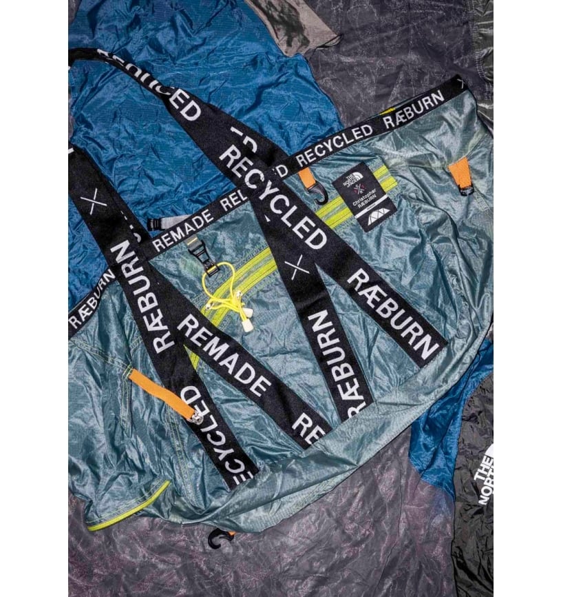 Çantalar, The North Face çadırlarının geri dönüştürülmesi ile hazırlandı. 3 farklı modelde tasarlanan çantalarda sarı ağırlıklı renkler kullanılırken ikonik The North Face logosu ve tasarımcının 4R yazılı kayışları bulunuyor. Yarattığı RÆBURN markası ile birlikte endüstride olumlu bir değişim yapmak için çalışan Christopher Raeburn, The North Face gibi keşfetmeye ve korumaya önem gösteren bir marka ile çalışmanın gurur verici olduğunu ifade ediyor.