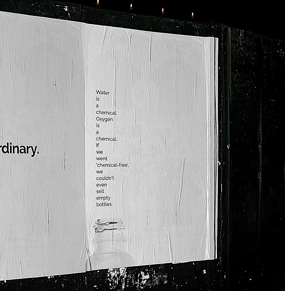 Bizim en hoşumuza gidenlerden biri ise, kozmetik ve güzellik endüstrisindeki “doğallık” ve sözde kimyasal karşıtlığı odaklı pazarlama stratejilerine mizahla gönderme yapan şu ilan oldu: