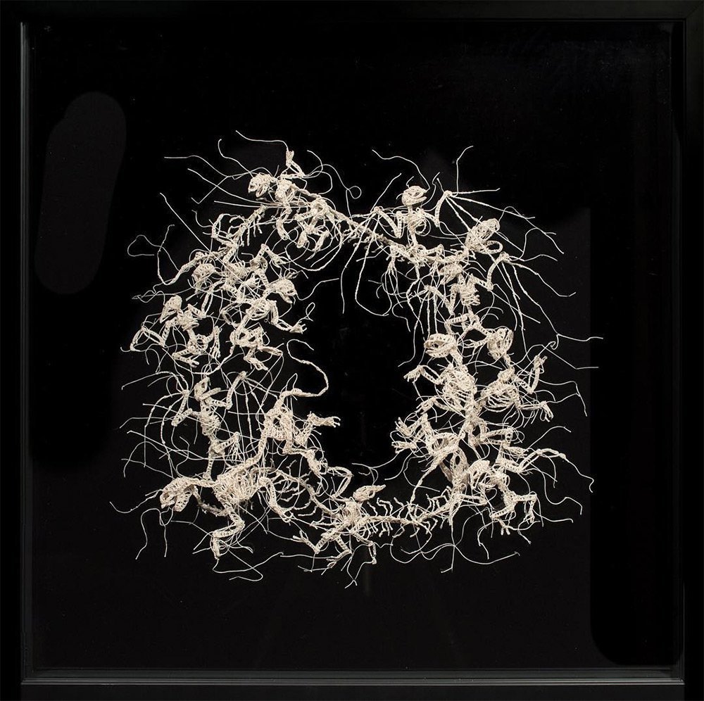 Caitlin McCormack, tığ işiyle şaşırtıcı çalışmalar yaratmaya devam ediyor. Daha önce tığ işi hayvan iskeletleriyle radarımıza takılan sanatçı, son dönemde üretimini biraz daha çeşitlendirmiş. Hayvanların yanı sıra insan iskeletlerine, şeytan ve iki başlı yarasa iskeleti gibi fantastik yaratıklara da yer vermeye başlamış. Hatta yeni çalışmaları arasında, yapımı 8 ay sürmüş bir sandalye bile var.