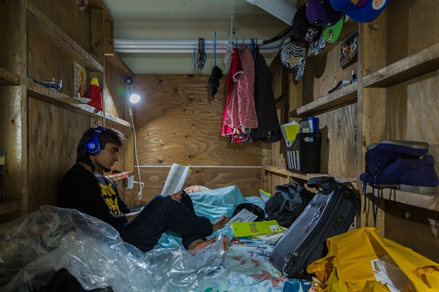 Bir ofis binasının tek bir katı üzerine kurulmuş olan otelin dar odaları sıkışık, üst üste eşyalarla doldurulmuş gibi görünse de aslında her birinin kendi içinde, kiracısının hayatı ve kişiliği ile ilgili ipuçuları veren bir düzene sahip olduğu kesin. Kim’in Enclosed: Living Small ismini verdiği fotoğraf serisinde, otelin kısa ve uzun süreli kiracılarının, bu kadar sınırlı bir mekanı, nasıl ayrı ayrı işleyip her köşesine kendi karakterlerini yansıttıklarını görüyoruz.