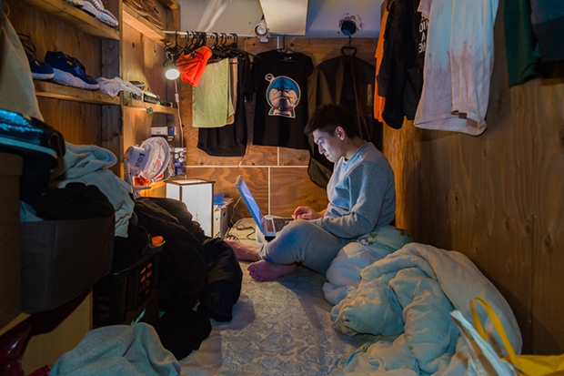 Bu alışılmadık konseptteki, gizli saklı konaklama yerindeki odaların yansıttığı hayatlar Kim’i öylesine etkilemiş ki, iki yıl sonra aynı yere bu defa fotoğraf çekmek için dönmüş. Otelde birkaç ayını geçiren Kim, minicik odalarda konaklayan otel sakinlerini, odalarının içinde fotoğraflamış.