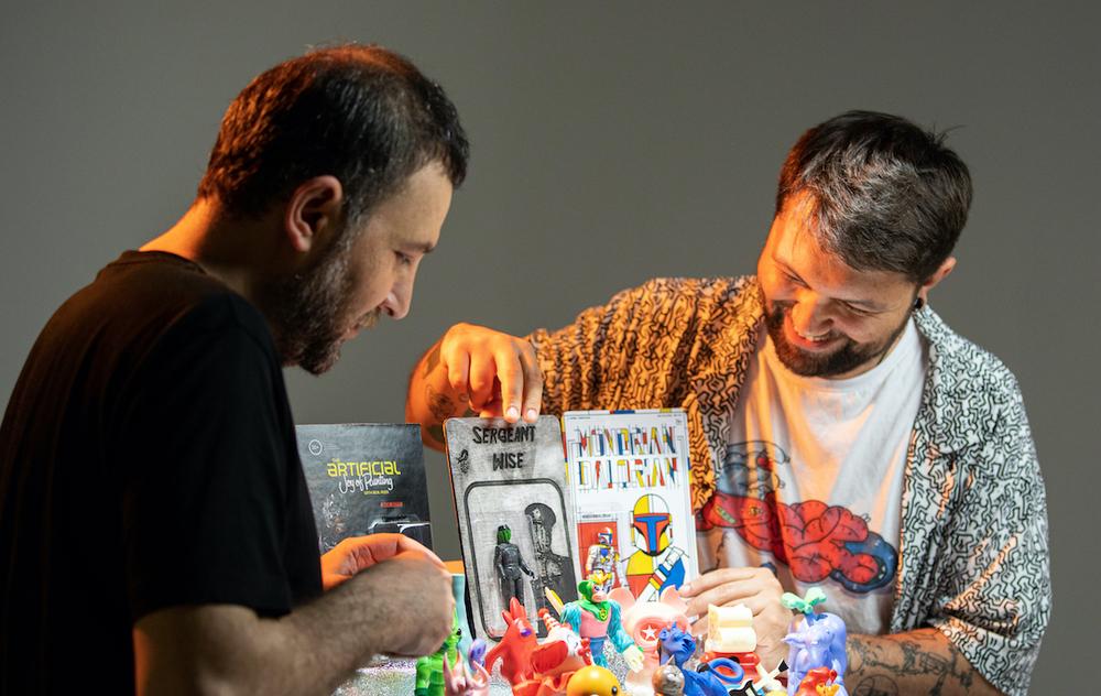 Bülent Gültek ve MRE: İkimizin de topladığı oyuncaklar var. Büyük bir koleksiyon olmasa da Star Wars figürlerinden anime ve çizgi film anime karakterleri ile sanatçı oyuncaklarına kadar uzanıyor. Emre’nin çocukluktan beri bırakmadığı çizgi film, action figürleri ve sanatçı oyuncakları var. Benim koleksiyon raflarımda ise Kenner figürleri, Japon kaiju figürleri ve Studio Ghibli figürleri var. Kilink Custom Toy ve Laser Pigeon figürlerini de koleksiyonumuza katmıştık. Bundan böyle daha fazla sanatçının oyuncakları kendi raflarımızda yerini alacak belli ki.