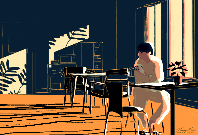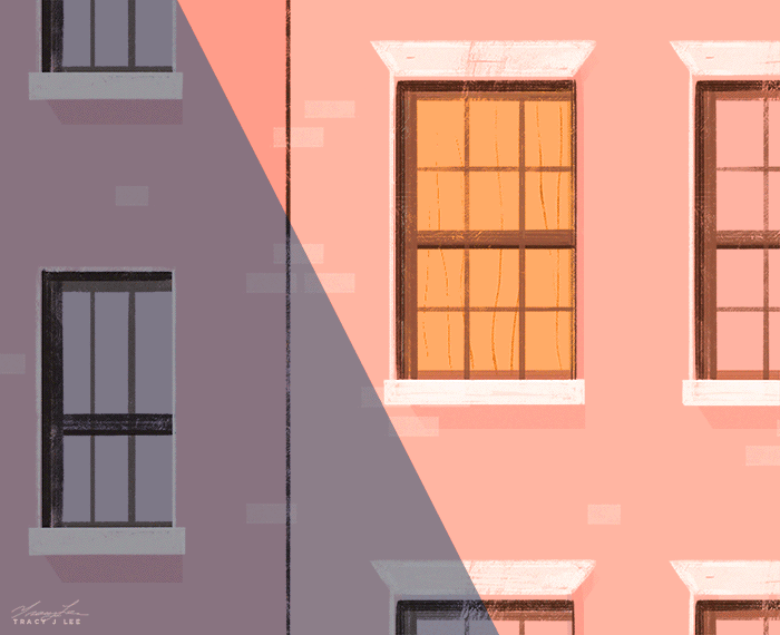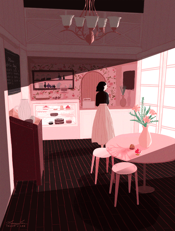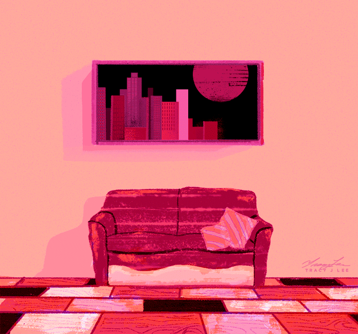 Şikagolu sanat yönetmeni, tasarımcı ve çizer Tracy J Lee derin düşüncelerde kaybolan insanları gözlemlemeyi ve onlar hakkında üretim yapmayı seviyor. GIF’lerinde yarattığı yüksek kontrastlı, gölge ve ışık oyunlu şehir sahnelerinde şehir sakinlerini bir var ediyor, bir yok ediyor. GIF’lerin birçoğunda ana karakter, kendisinin dışındaki bir ikizi gibi hop diye sahneye giriyor, sahneye girdiği gibi de kendini on yüz bin milyon baloncuk yapıyor.