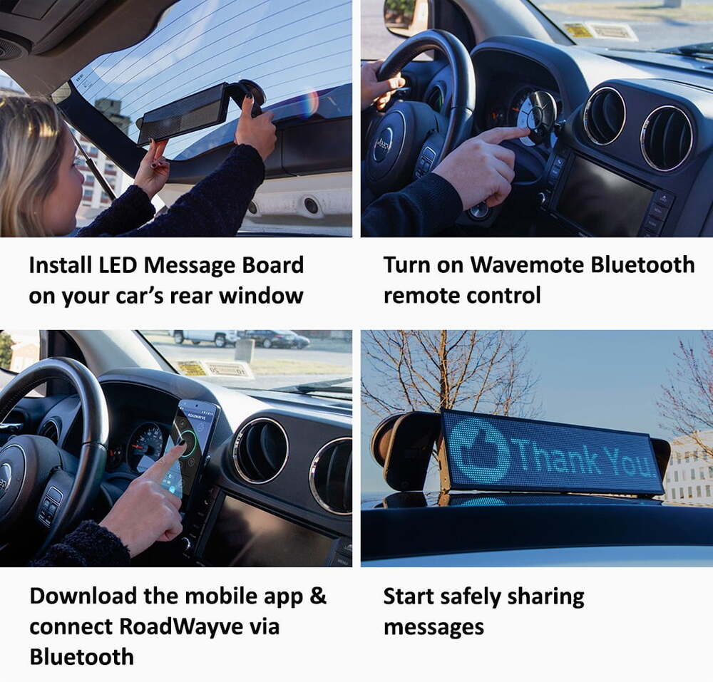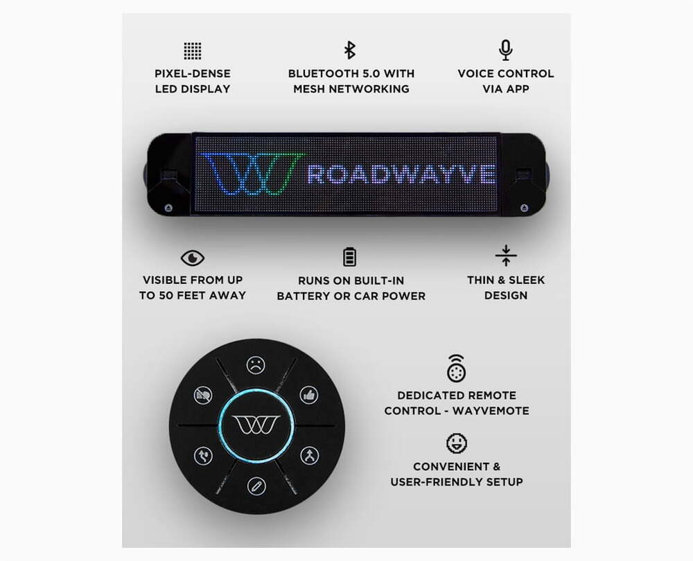 Yüksek çözünürlüklü LED ekran RoadWayve sürücüler arasındaki iletişimi güçlendirerek trafikte stres seviyesi daha düşük ve güvenli bir atmosfer yaratmayı hedefliyor. Otomobilin arka camına monte edilmek üzere tasarlanan RoadWayve kendi uzaktan kumandası Wayvemote veya akıllı telefon üzerinden kendi mobil uygulamasıyla kumanda edilebiliyor.
