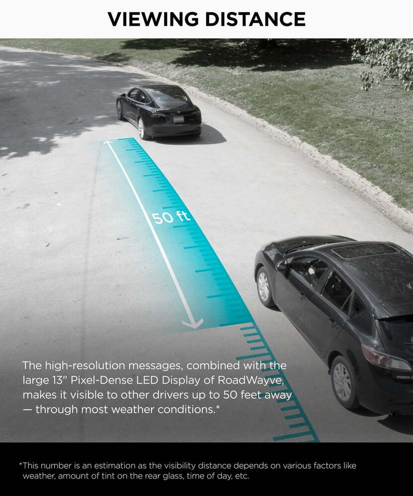 RoadWayve ekranında, 50 feet (15,24 m) mesafeye kadar yüksek görünürlük ve 120° görüş açısı sağlayan bir LED matris kullanılmış. Yüksek menzil ve sıfır gecikme sağlayan Bluetooth 5.0 ile donatılmış cihaz, hatchback, SUV ve hatta limuzin gibi uzun araçlar dahil her tür modelde mesajları anında ekrana iletebiliyor.