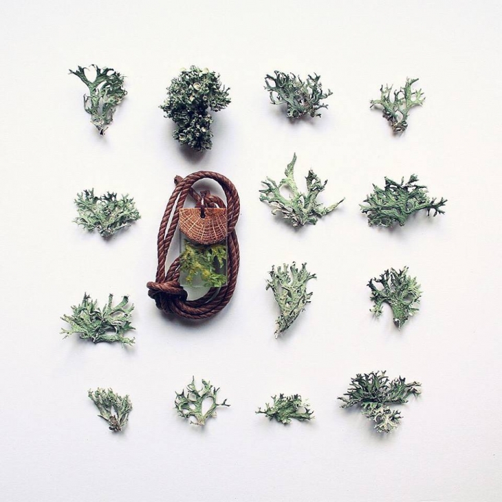 Vozmos’un ilk adımı Demirkutlu Kırklareli’nde bir köydeyken atılmış. Etrafını saran ağaç ve yosunlar Demirkutlu’nun en büyük ilhamı olmuş. Kolyelerde reçine, ağaç ve liken (kara yosunu) kullanan ekip, tasarımlarına Trakya Ormanlarına duydukları sevgiyi yansıtmışlar adeta.