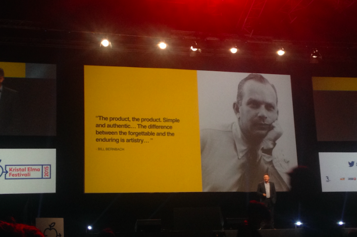 Ruhanen, konuşmasında Bill Bernbach’ın şu sözlerine yer verdi: “Ürün, ürün. Basit ve özgün…Unutulacak olan ve kalıcı olan arasındaki fark (reklamcının yaratacağı) sanatta…”