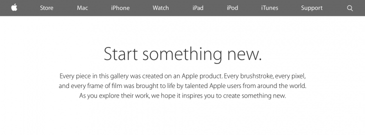 İlk olarak Japonya’da yayınlanan “Start Something New” kampanyası iPhone 6, iPhone 6 Plus, iPad Air 2 ve iMac üzerindeki VSCO Cam, Procreate, Slow Shutter, Brushes Redux, Final Cut Pro, iDraw, iMovie, Waterlogue gibi uygulamalar ve enstantane kontrolü, seri çekim modu ve HDR kamera komutlarıyla yaratılan sanat eserlerini içeriyordu. Eserlerin sahipleri arasında Jingyao Guo, Nomoco, Jimmy Chin, Marcelo Gomes, Austin Mann, Christian Weber, Craig & Karl, Roz Hall, Jared Chambers, Jules Julien, Alistair Taylor-Young, Chad Riley gibi isimler bulunuyordu.