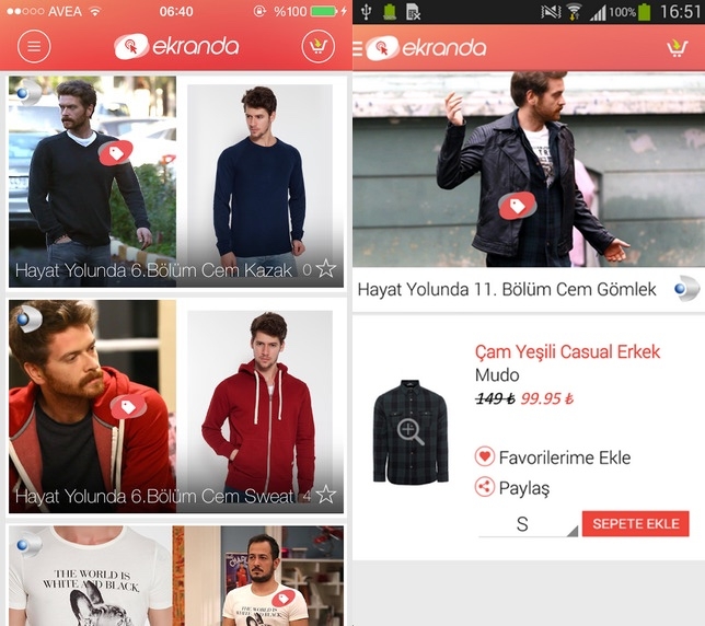 İkinci ekran uygulamalarının doğrudan pazarlamaya temas ettiği noktada Ekranda uygulaması karşımıza çıkıyor. Doğan Grubunun geliştirip Lidyana ortaklığında hayata geçen uygulama, beğendiğiniz kıyafetleri satın almanızı sağlıyor. Tabii vitrinde veya mağazada değil diziyi izlerken oyuncunun üzerinde gördüklerinizi.