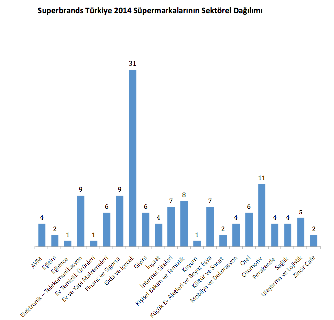 Dünya çapında 88 ülkede yapılan süpermarka araştırması, ülkemizde on yıldır faaliyette bulunan Superbrands Türkiye tarafından düzenleniyor. İki yılda bir, seçici kurul ve Nielsen’in ölçümlerine göre yapılan araştırmanın 2012 sonuçları 159 markayı kapsıyordu. 134 markadan oluşan 2014 sıralamasında ise Paşabahçe, Uğur Derin Dondurucu, Ülker Çikolatalı Gofret ve Vakko ilk kez süpermarka olarak yer alıyor.