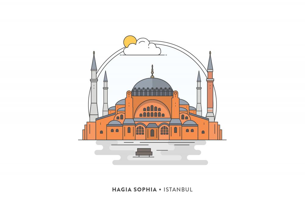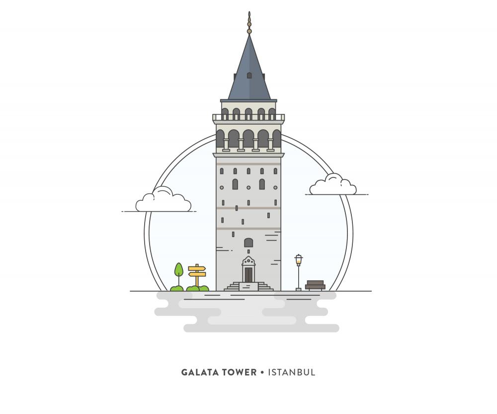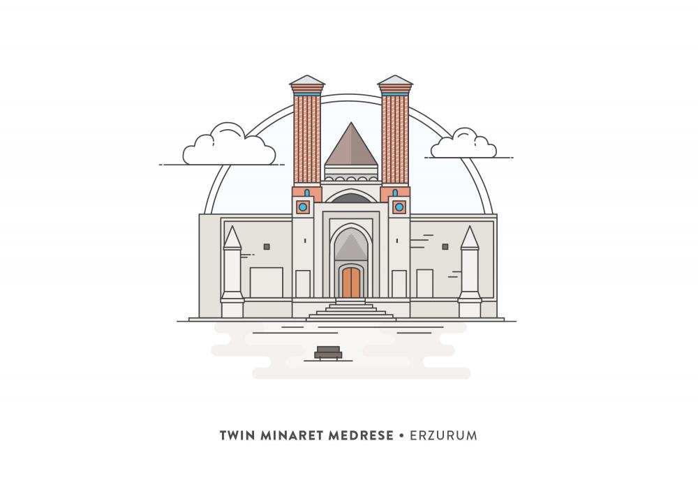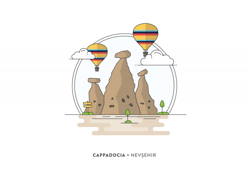 “Landmarks of Turkey” Türkiye’nin tarihi ve kültürel değerlerine, ikon niteliğindeki yapılarına minimalist bir bakış açısıyla yaklaşan illüstrasyonlardan oluşuyor. Vinyet tarzı illüstrasyonlarda sadelik ön planda. Modern çizgiler yumuşak renk dokunuşlarıyla birleşerek bu yapıların görkemine sevimlilik katıyor.