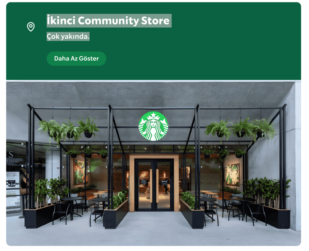 Starbucks Türkiye’nin Community Store sayfasında, İkinci Community Store’un da “çok yakında” geleceği mesajı verilmiş.