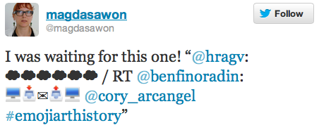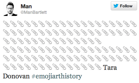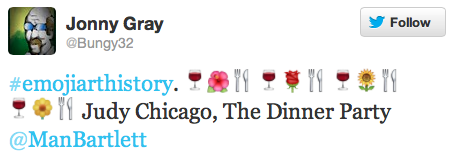 Brooklynli tasarımcı Man Bartlett, Tumblr’da bu postu görmesinin üzerine Twitter’da çığ gibi büyüyen bir meme silsilesi başladı, halaybaşı da #EmojiArtHistory etiketi.