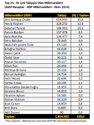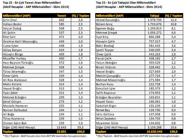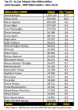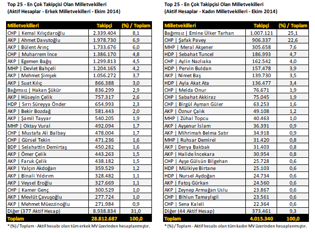 – En çok takipçisi bulunan 25 milletvekili sıralaması ise şöyle;
