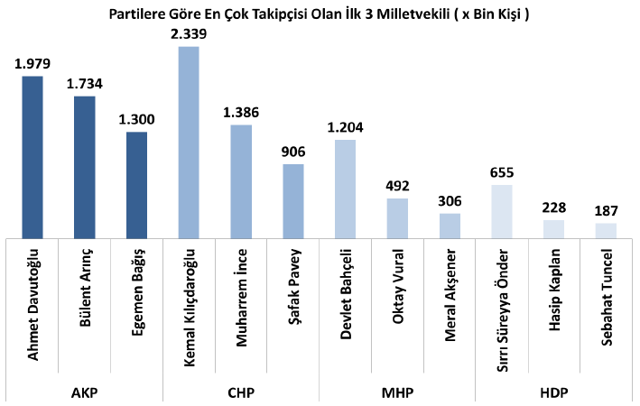 – Partilere göre en çok takipçisi olan ilk üç milletvekili dağılımı;
