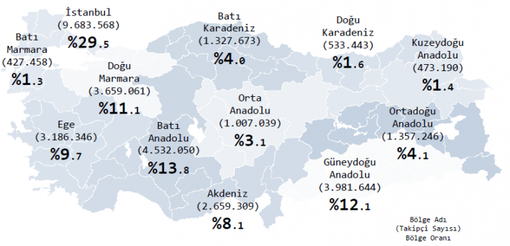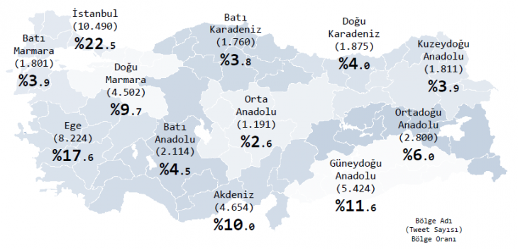 Bölgesel dağılıma göre milletvekillerinin aktifliği, tweet sayısı ve takipçi sayısı oranları ise aşağıda;