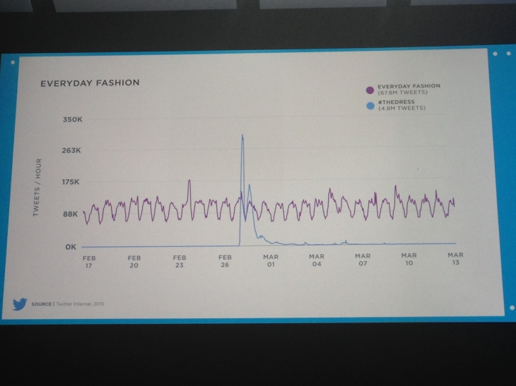 1 Mart haftası boyunca konuşulan #TheDress‘in Twitter’daki arama sonuçlarına bakıldığında tıpkı yıldırımın yarattığı anlık etkiye benzer bir grafik görüyoruz.