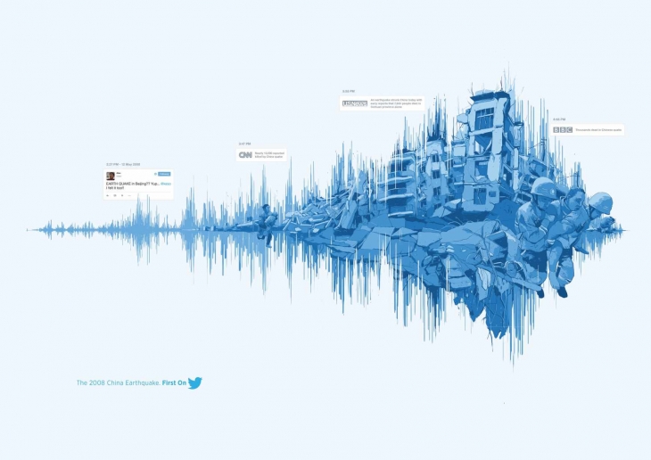 Ogilvy&Mather Singapur, ilk önce Twitter‘dan duyurulup dalga dalga bir depreme dönüşen üç önemli olayı ve olayların yayılma hızını ve gücünü sismograf çıktılarına yansıyan deprem dalgalarına benzeterek görselleştirmiş. Bu dalgaların taradığı alanın içinde ise olaya dair yaşanılanların illüstrasyonları bulunuyor.