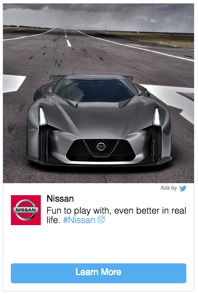 Yayınlanan ilk reklam Nissan’ın oldu. Twitter üzerinden yapılan reklamlar, birebir aktarılarak diğer ağlarda gösterilmesini sağlanacak. Böylece markalar Twitter üzerinden reklam vererek hem ağın içindeki kullanıcılara hem de ağın dışındaki pek çok farklı kullanıcıya ulaşma imkanı bulacak.