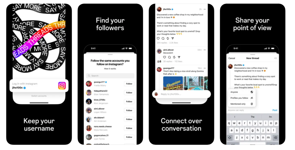 Instagram CEO’su Adam Mosseri tarafından “denemeye değer riskli bir bahis” olarak tanımlanan Threads, Instagram’ın alt uygulaması olarak çalışan Twitter benzeri bir metin tabanlı sosyal ağ uygulaması. Her ne kadar yazı karakteri ve simgeleriyle tasarımı Instagram dünyasına ait görünse de, ara yüzün işleyişi neredeyse birebir Twitter ile aynı. Öyle ki, bir iki içerik üreticinin tweet demekten kendini alamadığı Threads uygulaması içindeki gönderilere ne ad verileceği konusunda süregelen bir tartışma mevcut.