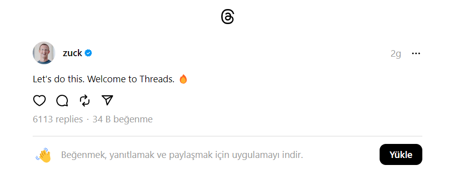 Eski Twitter CEO’su ve Twitter’ın rakiplerinden Bluesky’ın kurucularından Jack Dorsey, yukarıdaki paylaşımı ile Threads’i şimdiden hedef tahtasına oturttu. Dorsey ve Musk’ın veri paylaşımı nedeniyle eleştirdiği Threads, veri gizliliğinin AB ülkelerinde sorunlara neden olabileceği gerekçesiyle şimdilik buralarda yayınlanmayacak. iOS ve Android için AB ülkeleri hariç 100’den fazla ülkede erken erişime açılan Threads’ın şimdilik aktif bir web sitesi ise bulunmuyor.
