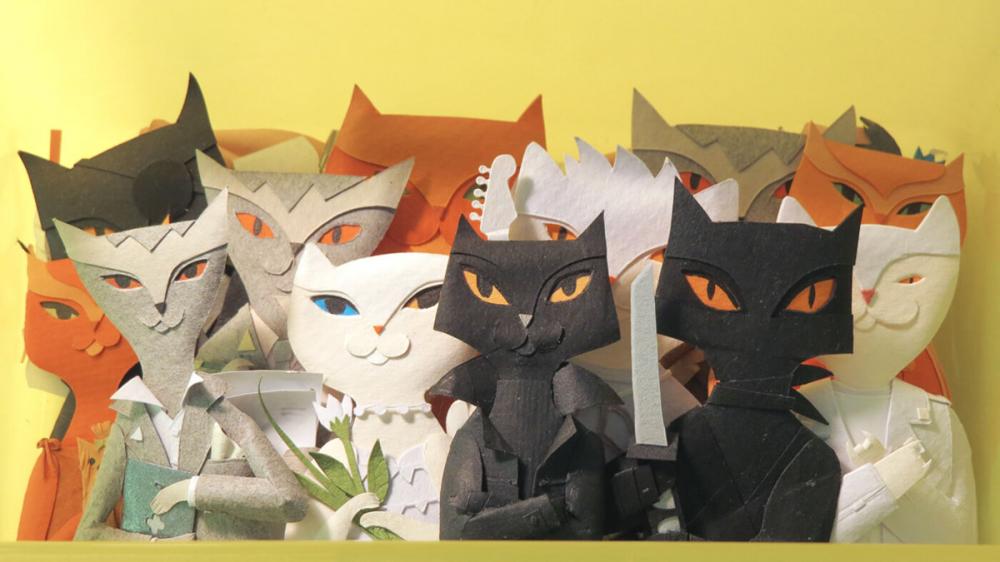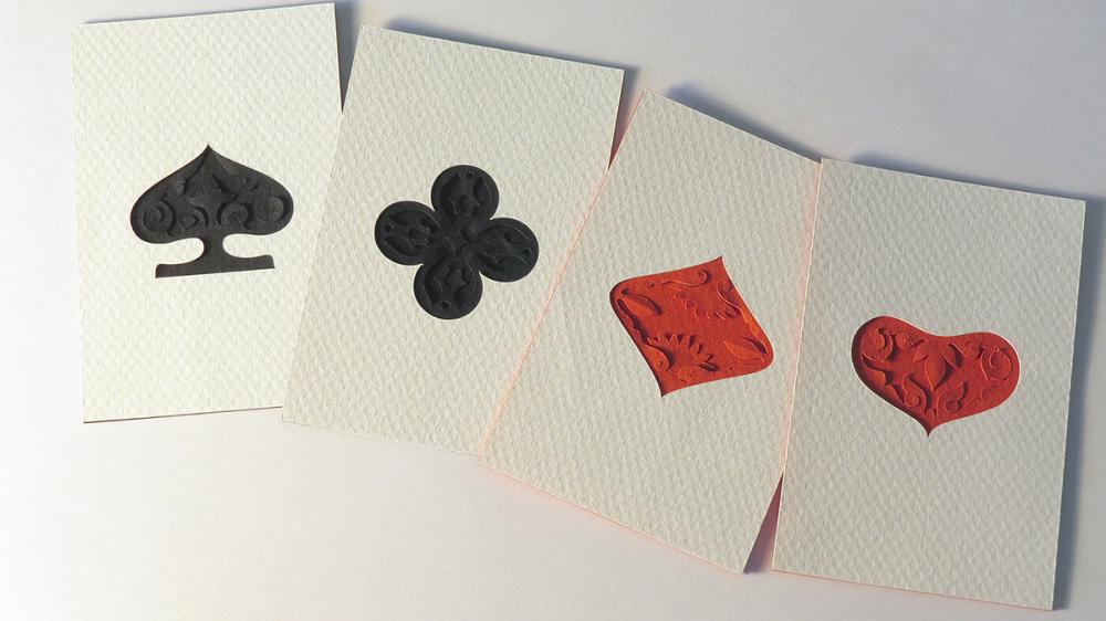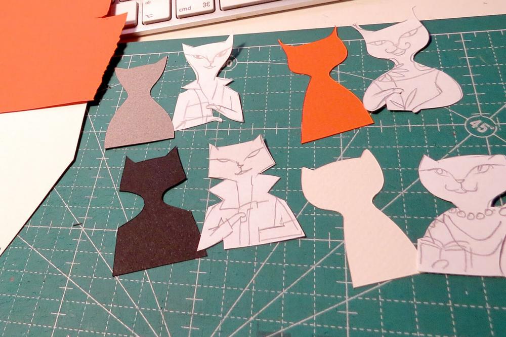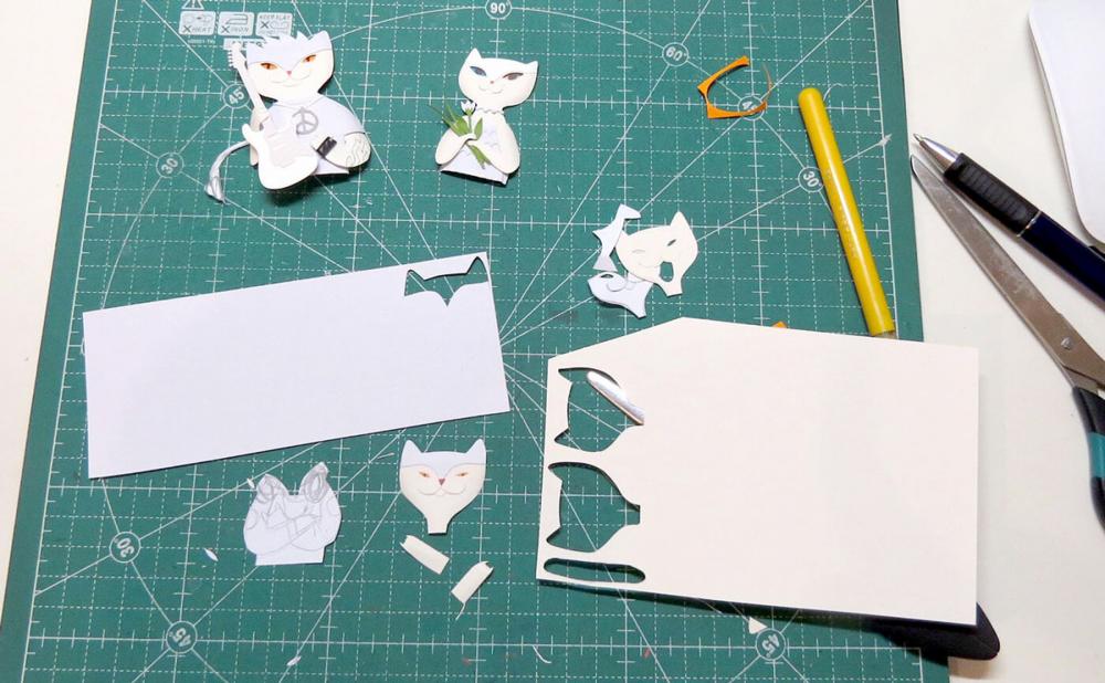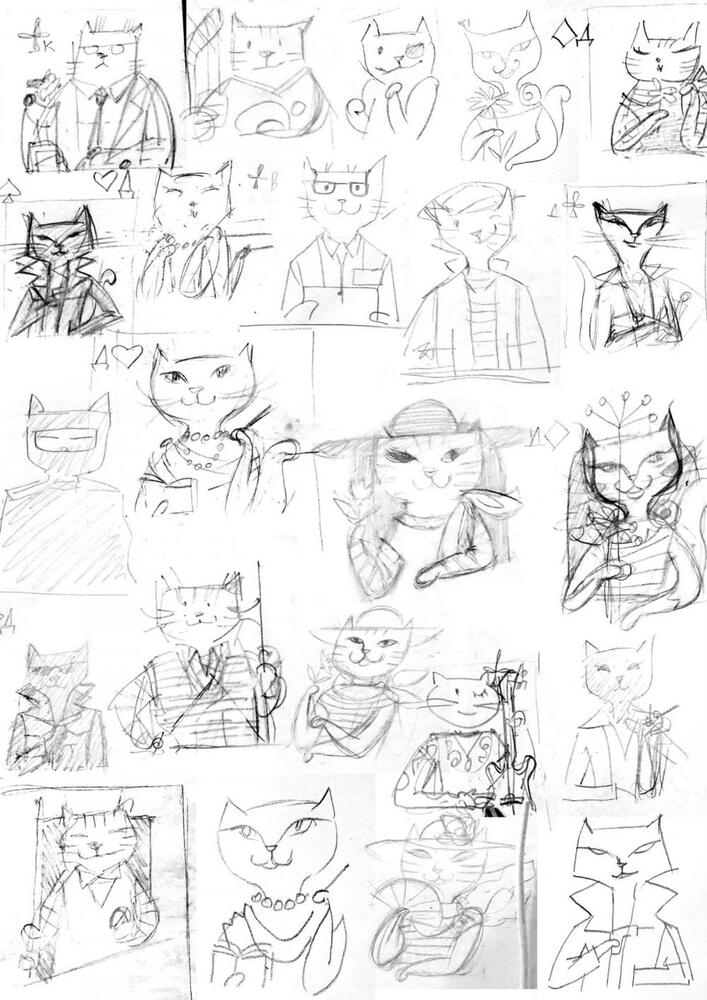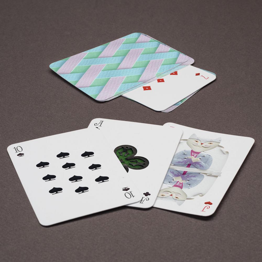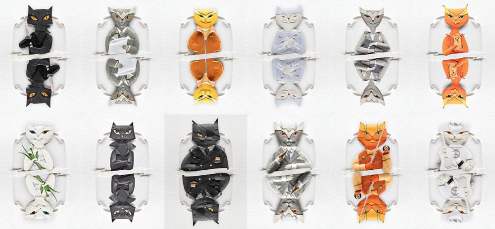 Karmaşık yapıdaki üç boyutlu, gerçeğe yakın çizimler ve resimler yapan, kartpostallar tasarlayan çiftin Playing Cats adlı iskambil serisi renkli kartonlara çizip çıkardıkları, farklı renklerde karton parçalarıyla eklemeler yaparak üç boyutla hale getirdikleri kedilerden oluşuyor.