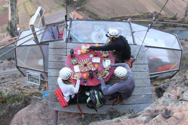 Natura Vive, Cuzco yakınlarında bulunan El Valle Sagrado’nun (Kutsal Vadi) dik kayalıkları üzerine üç konaklama evi kondurmuş. Skylodge isimli, tamamı şeffaf tasarlanmış olan kapsül evler; cesur misafirlerini yerden 122 metre yükseklikte, yıldızlarla iç içe, bol adrenalinli bir deneyime davet ediyor.
