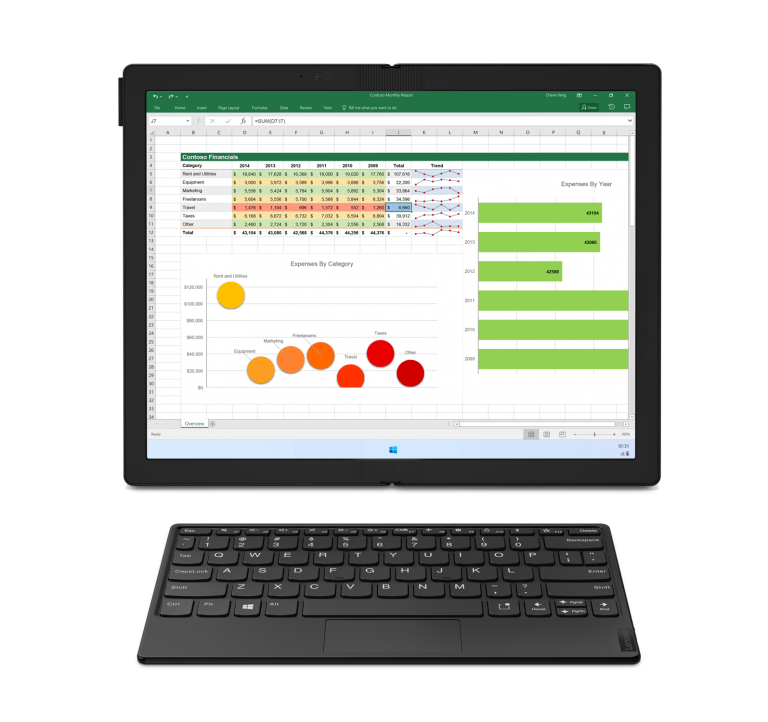 Kullanım alanları olarak ise Lenovo ürününü telefon, tablet ve bilgisayar deneyimlerini birleştiren ve ihtiyaca göre değiştirilebilen bir cihaz olarak sunuyor. Ekran tam açıldığında stand üzerine yatay veya dikey konulup her iki şekilde de kullanılabiliyor. Ayrıca Bluetooth klavye bağlayarak ister geleneksel bilgisayar görünüşüne istenirse de kablosuz olarak uzaktan kullanılabiliyor. Intel işlemci kullanmakla birlikte çok güçlü bir donanım sunduğunun sinyallerini vermiyor. Ancak multimedya tüketimi veya tablet üzerinden gerçekleştirilen işlemlere ikame olması açısından bir alternatif yaratıyor. Açıldığında 1 kg’dan az ağırlığa sahip olduğunu belirten şirket Windows 10 destekli versiyonunun 2020 ortasında 2.500 dolar etiketiyle piyasaya çıkmasının planlandığını belirtiyor. Windows 10X versiyonu ise bunu takiben piyasaya çıkması planlanıyor. Stand ise 2020’nin 2. yarısında raflarda olacak.