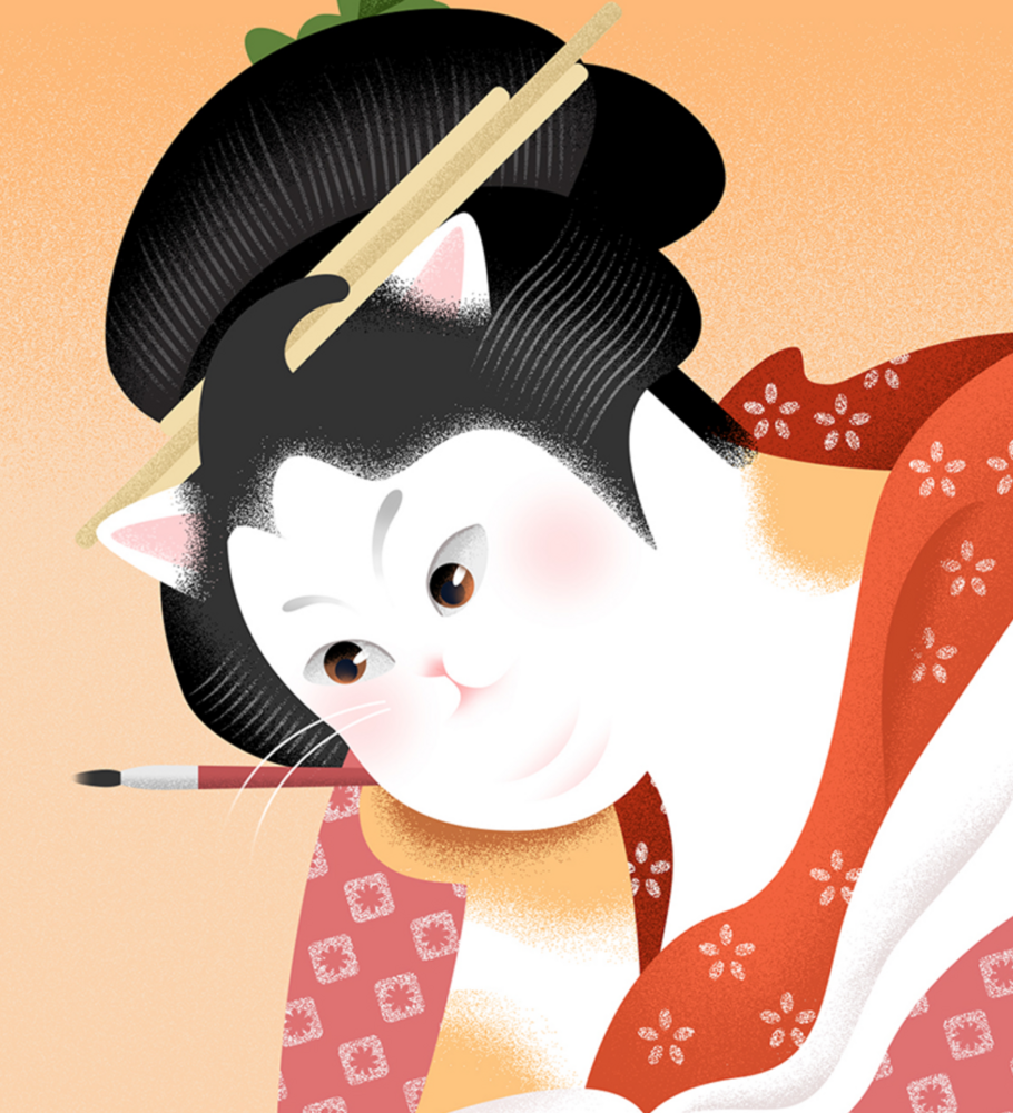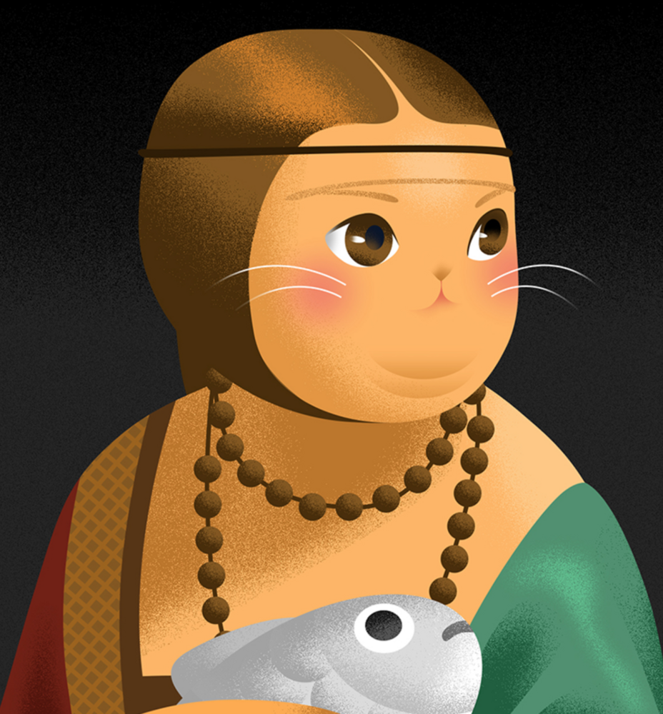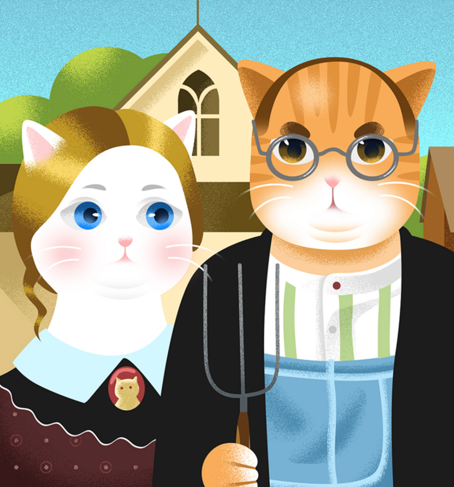 Çinli illüstratör ve arayüz tasarımcısı Effy Zhang’in kedili illüstrayon projesi Famous Kitty adını taşıyor. Zhang’ın Mart ayında Behance’te paylaştığı projesinde farklı dönemlerden ve farklı akımlardan pek çok eserdeki figürü kediye dönüştürmüş. Johannes Vermeer’in İnci Küpeli Kız, Grant Wood’un American Gothic, Andy Warhol’un Marilyn Monroe, Leonardo da Vinci’nin Kakımlı Kadın, Diego Velázquez’in Portrait of Pope Innocent X ve Las Meninas, Caravaggio’nun Baküs ve Roy Lichtenstein’ın Boğulan Kız adlı eserlerindeki figürler kedi olarak yeniden doğmuş bu seride. Sanatçı ayrıca büyük kafalı güzel kadın portreleriyle tanınan Japon Ukiyo-e sanatçısı Kitagawa Utamaro’nun figürlerinden birini de kedi olarak yeniden çizmiş. Zghang bu çizimlerle; pul, rozet ve kartpostal tasarımları da türetmiş.