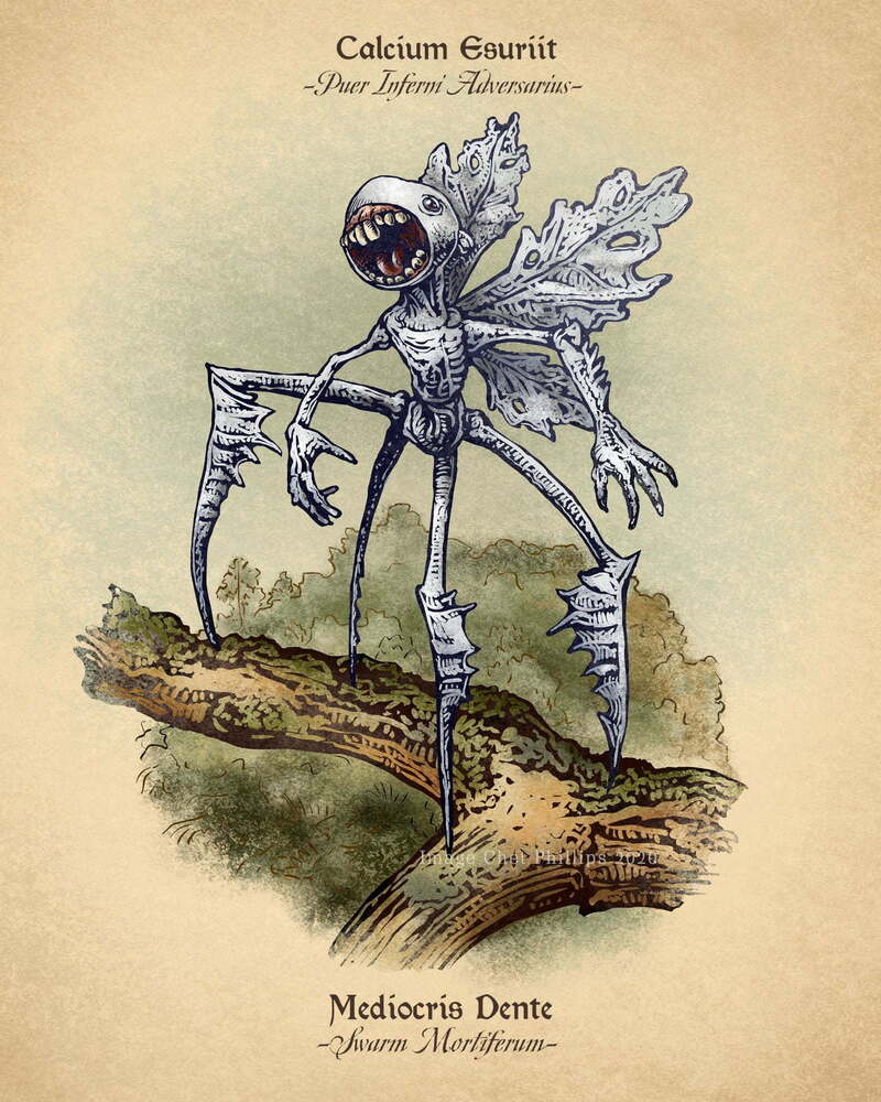 Unnatural History serisinde yine sinema, animasyon, mitoloji, edebiyat ve televizyon evreninden kurgusal yaratıklara ve canavarlara yer vermiş. Her bir karakteri bilimsel bir inceleme yapar gibi ele alan Philips, Etsy mağazasında paylaştığı çizimlerin başlığına “study” sözcüğünü eklemeyi de ihmal etmemiş.