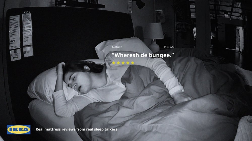 Uykusuzluk pandemisi, son yıllarda insanları ağız bantlarından ağır battaniyelere kadar birçok ürünü ve yöntemi denemeye itti. Öte yandan influencer’ların ve yapay zekâ destekli sahte yorumların çoğaldığı bir dönemde, hangi ürünlerin gerçekten işe yaradığına karar vermek de bir o kadar zorlaştı. Bu sorunu yaratıcı bir fırsata dönüştürmek isteyen IKEA, müşteri yorumlarına yeni bir bakış açısı getirdi. İyi uykunun göstergesi olan derin uykuyu (NREM 3) ve REM uykusunu mercek altına alan marka, bu evreler sırasında ortaya çıkan uyku mırıldanmalarını kampanyasının merkezine koydu. Bunları, mizahi bir şekilde ürün incelemesi/yorumu şeklinde konumlandırdı.