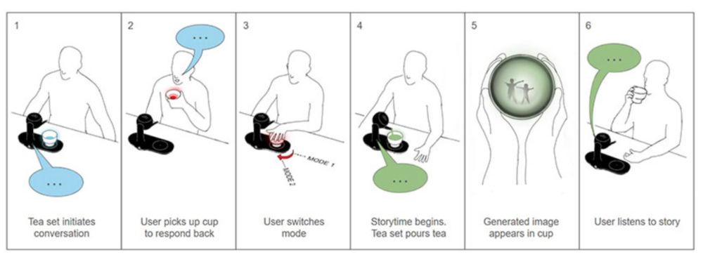 Kevin Tang ve Kelly Fang’ın tasarımı, çayın kültürel önemine saygı göstererek form ve işlev arasındaki sürekliliği vurguluyor. Çay koymaktan yudumlamaya kadar her eylem mecazi olarak hikaye anlatma süreciyle ilişkilendiriliyor. Burada çay koymak bir hikayeyi paylaşmayı, içmek ise kullanıcının bu paylaşılan deneyimi özümsemesini ifade ediyor. Çay fincanı, çay tüketildikçe gelişen anlatıyı görüntüleyen gömülü bir ekranla donatılmış, birincil arayüz işlevi görüyor. Bu yaklaşım, çay içmenin dokunsal, duyusal deneyimini dijital hikaye anlatımıyla birleştirerek kullanıcıları geleneksel ekran tabanlı etkileşimin ötesine geçen yapay zekâ ile sezgisel, uygulamalı bir etkileşime davet ediyor.