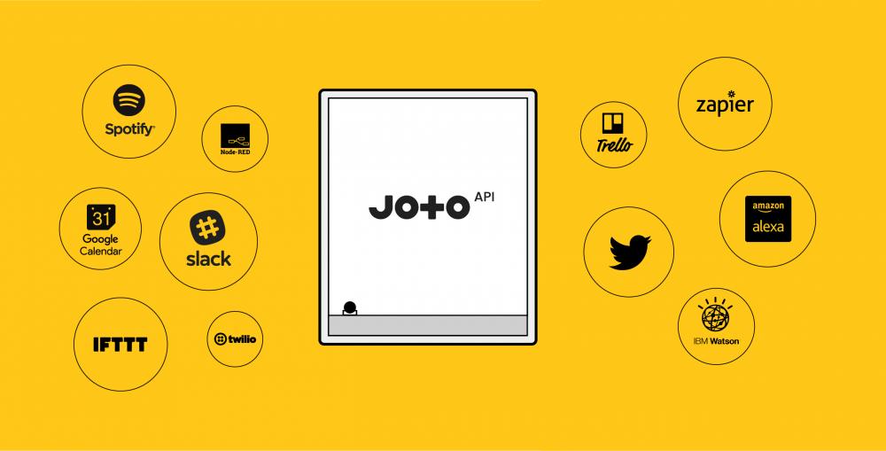 Joto’nun uygulaması pek çok uygulamayla uyumlu çalıştığından Twitter, Spotify, Slack veya başka verimlilik uygulamaları aracılığıyla hazırlanmış tweetler, sözler, yapılacak listeleri, notlar, bulmacalar, menüler ve daha pek çok şeyi tahta üzerinde yaratabiliyor. Joto’nun açık API’si bu uygulamaların günden güne artmasına olanak veriyor. Yapılabilecekler neredeyse sınırsız…