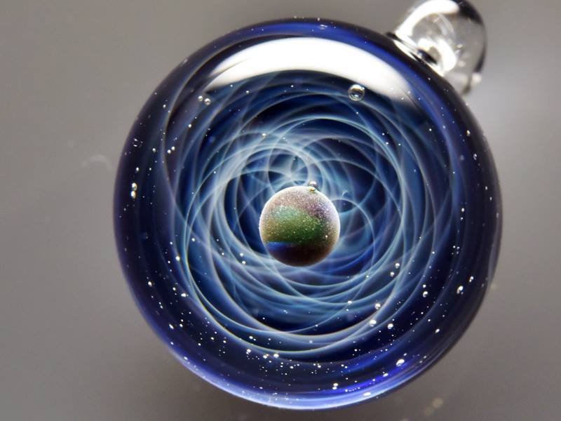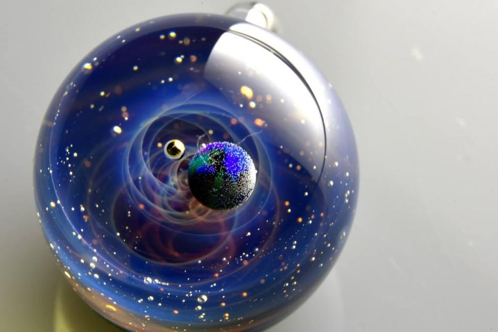 Cam sanatçısı Satoshi Tomizu, galaksileri ve güneş sistemini içeren küçük cam küreler yaratıyor. Kürelerin içinde; opaller, gerçek altın pırıltıları ve renkli cam izleri Samanyolu’ndaki döngüler gibi sarmal bir biçimde uzanıyor. Sanatçı, uzay görünümlerinin yanı sıra zaman zaman çiçek formlarını veya deniz canlılarını içeren cam küreler de yaratıyor.