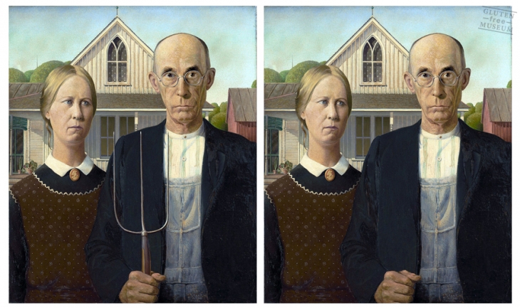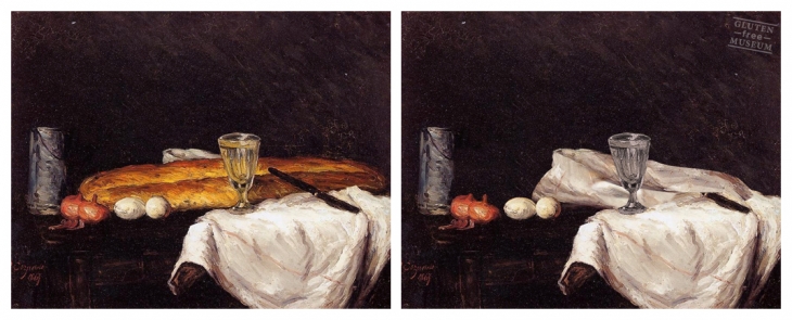Fransız grafik sanatçısı Arthur Coulet; birinci dünya sorunları arasında hızla yükselen bu hastalığın “pençesine düşenler” için üşenmemiş, farklı zamanlara ait ünlü eserlerde, filmlerde ve fotoğraflarda gördüğü glutenli veya glutene giden yolu döşeyen ne var ne yok, yok etmiş. Glutensiz hale getirdiği tüm bu eserleri “Gluten Free Museum” adını verdiği Tumblr hesabında yayınlamış.