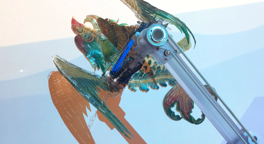 El sanatlarını ve teknolojiyi bir arada kullanan Çin Pavyonu sergisi, geleneksel gölge oyunlarını ekranlar aracılığıyla izleyiciye sunuyor. Kuklaları insanlar tarafından oynatılan gölge oyunu düzenekleriyle küçük bir sistem tarafından otomatik oynatılan düzenekler yan yana sergileniyor. Sanatçılar o sırada kuklaları oynatmıyorsa nöbeti otomatik düzenekler devralıyor.