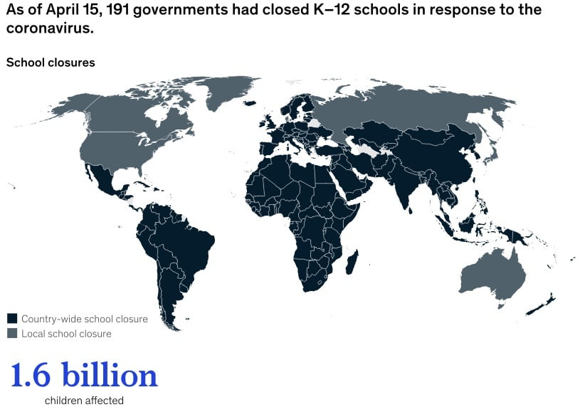 Dünya Sağlık Örgütü’nün salgın ilanından sonra bir ay içerisinde 191 ülkedeki öğrenciler bir anda evden eğitime geçtiler. Okulların kapanması ve yaklaşık olarak 1.6 milyar çocuğun evden eğitim sürecine geçmesiyle dünyanın her yerinde çalışan ebeveynler yeni sorunlarla karşılaştı. Özellikle anneler iş yerlerinde devam eden cinsiyet eşitsizliği bir yana çocuklarının evde eğitim görmeye başlaması sebebiyle işten ayrılmayı düşündü. Bu süreçte yaklaşık iki milyon kadar kadın iş gücünden ayrılmayı bir seçenek olarak önüne koydu.