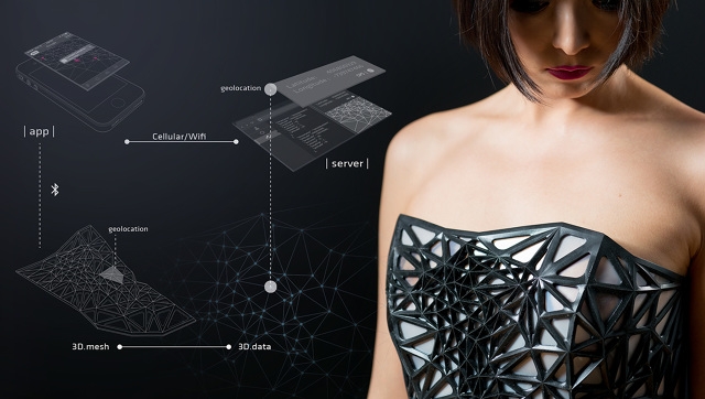 Kişisel verimiz karşılığında internet üzerinden sayısız servisten yararlanırken, bu veri üretimi üzerinde ne derece söz sahibiyiz, ne kadarını bilmeden ifşa ediyoruz ve en önemlisi paylaştıkça metadataya dönen bu koskoca tablo bizi ne kadar gerçekçi bir şekilde yansıtıyor? Bu gibi sorularla yola çıkan Xuedi Chen, veri güdümlü giyilebilir bir heykel yarattı.