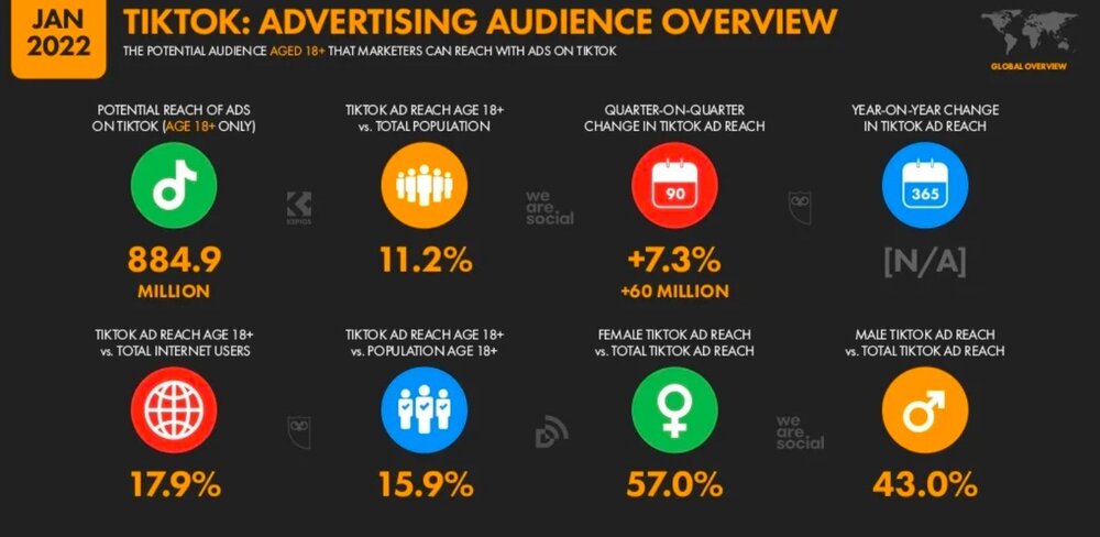 Bu noktada TikTok’a da ayrı bir parantez açmak gerekiyor. Tiktok son 90 günde kullanıcı sayısını yüzde 7,3 (60 milyon) artırırken listenin üst sıralarına doğru yükseliyor. Bu sayede platformun reklam kitlesi de hızlı bir şekilde büyüyor. 18 yaş üstü kullanıcılar arasında sosyal medya platformunun dünya çapındaki reklam erişimi 885 milyona yaklaştı. Statista’dan alınan verilere göre sosyal medya reklam harcaması 150 milyar doları aşarken toplam dijital harcamaların yaklaşık üçte birini sosyal medya reklamları oluşturuyor.