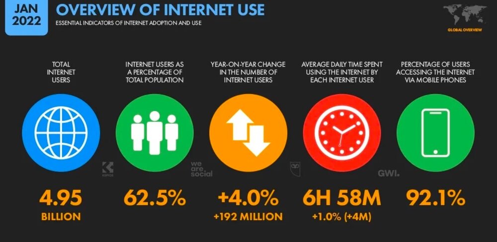 Digital 2022 raporunun bulgularına göre daha fazla insanın çevrimiçi ortamlarda vakit geçirdiği, buralarda para harcadığı ve sosyal medya kullanımını artırdığı görülüyor.