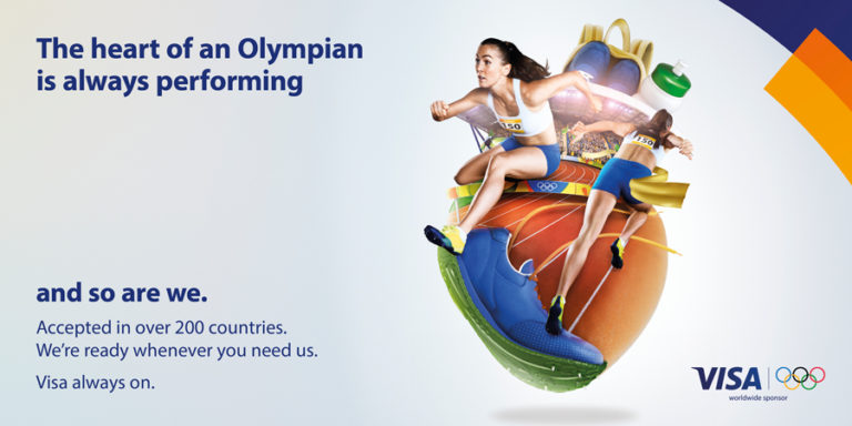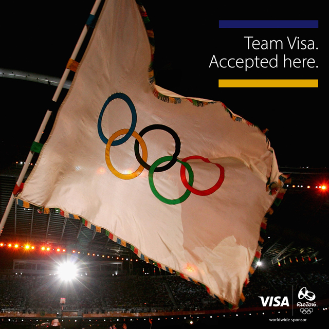 Visa’nın Rio 2016 küresel marka kampanyası Haziran ayında başladı. Hazırlanan reklam filminde Team Visa atletleri ortaklaşa bindikleri otomobille Rio’ya seyahat ediyor. Morgan Freeman’ın seslendirdiği reklam filminde Visa kredi kartına sahip olmanın otomobille yapılan yolculukları kolaylaştırdığı vurgulanıyor. Otomobilin sürücü koltuğunda Yeni Zelandalı gülleci Valerie Adams yer alıyor.