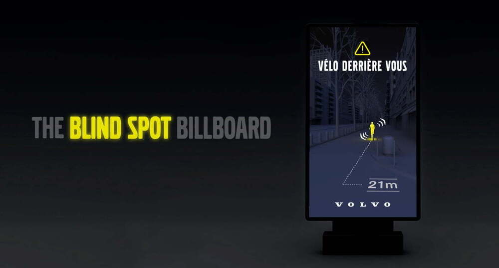 FamousGrey tarafından yaratılan Blind Spot Billboard kampanyasında dijital pano Volvo’nun otomobillerindeki sensöre benzer bir kör nokta detektörü ile donatılıyor. Harekete duyarlı bir radar yerleştirilen dijital reklam panosu, yolda yaklaşmakta olan bisiklet sürücüsünü gerçek zamanlı olarak ekrana yansıtıyor. Mesafeyi ölçüyor ve bisiklet sürücüsünün nerede olduğu hakkında bilgi veriyor. Farklı modları sayesinde dijital pano hem gündüz hem gece aktif olarak çalışıyor ve sürücüleri bisikletçiler konusunda uyarmış oluyor.