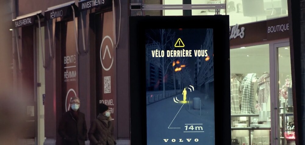 Volvo otomobillerinde bulunan kör nokta uyarısı (Blind Spot Information System) teknolojisini tanıtmak için bisiklet yoğunluğunun fazla olduğu Brüksel’de dijital reklam panosunu merkeze koyan bir kampanya hazırlıyor. Şehrin en işlek noktasında bulunan ve tam kavşakta yer alan dijital reklam panosu bu özelliği tanıtmak için kullanılıyor.