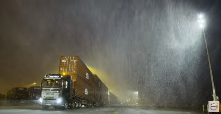 Otomatik şanzımanlı Volvo FH16 750, zorlu hava koşulları altında art arda kamyona bağlanan 750 tonluk kargo konteynerlerini 100 metre çekmeyi ve böylesine ağır bir yükle kalkış yapmayı başardı.