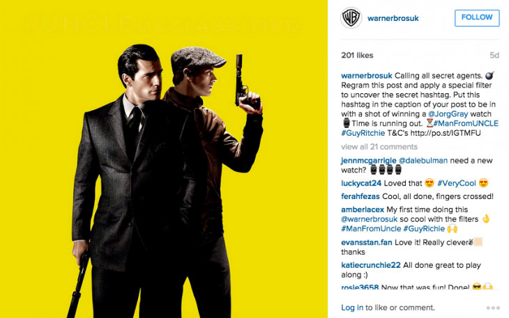 Kampanya katılmak için yapmamız gerekenler şöyle; Warner Bros UK’in paylaştığı, içinde bir gizli etiket olan fotoğrafı Regram uygulamasını kullanarak, tekrar paylaşıyoruz. Ancak ilk yapmamız gereken; bu gizli etiketi deşifre edecek doğru filtreyi bulmak. Sonrasında ise deşifre ettiğimiz etiketi, paylaştığımız fotoğrafın altına yazıyoruz. Yarışmanın ucundaki ödül ise oldukça kışkırtıcı: Bir adet Jorg Gray saat.