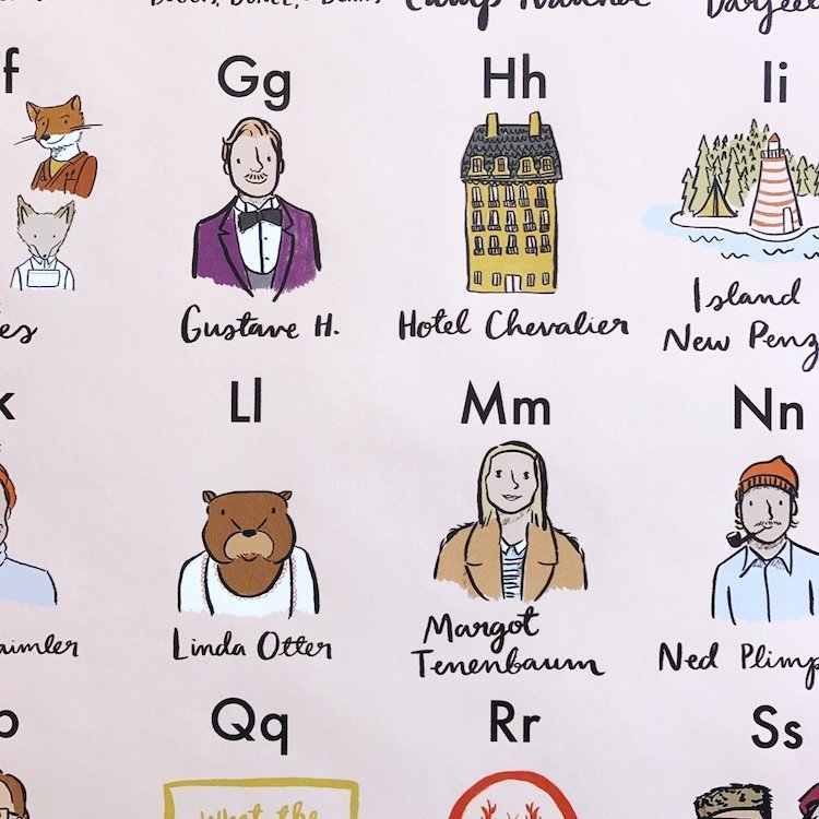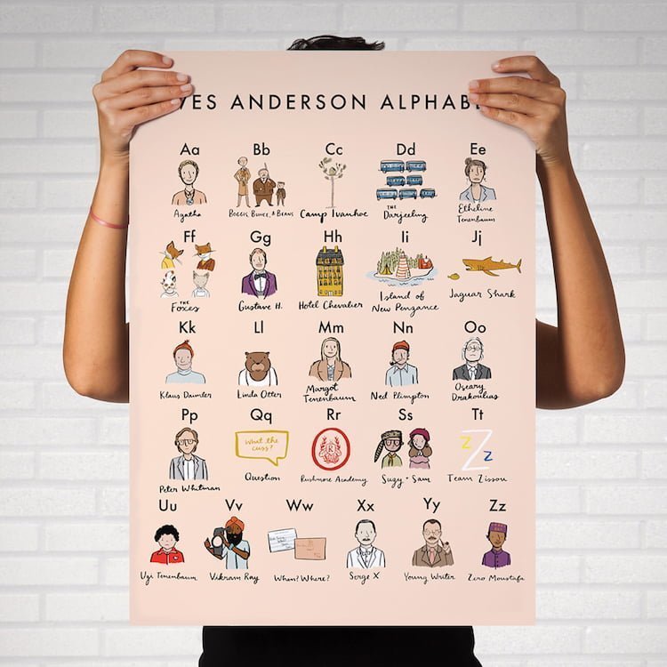 Her bir harfe atanan karakter, Wes Anderson hayranları için o karakterin ait olduğu dünyanın kapılarını aralıyor. Büyük Budapeşte Oteli’nden Agatha karakteriyle başlayan Wes Anderson alfabesi, Fantastic Mr. Fox’daki Boggis, Bunce ve Bean ile devam ediyor. Yine Büyük Budapeşte Oteli’nden Zero Moustafa ile alfabe tamamlanıyor. Hafızayı tazelemek için birebir. Alfabedeki tanıyamadığınız karakterler de hala film listenizde izlenmeyi bekleyen Wes Anderson filmleri için hatırlatma niteliğinde.