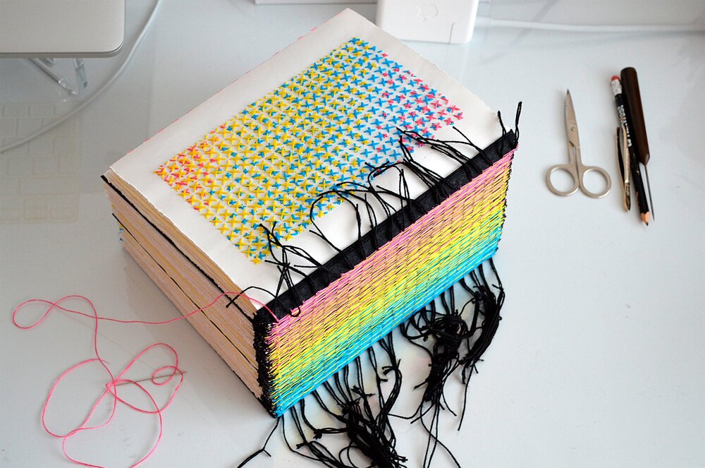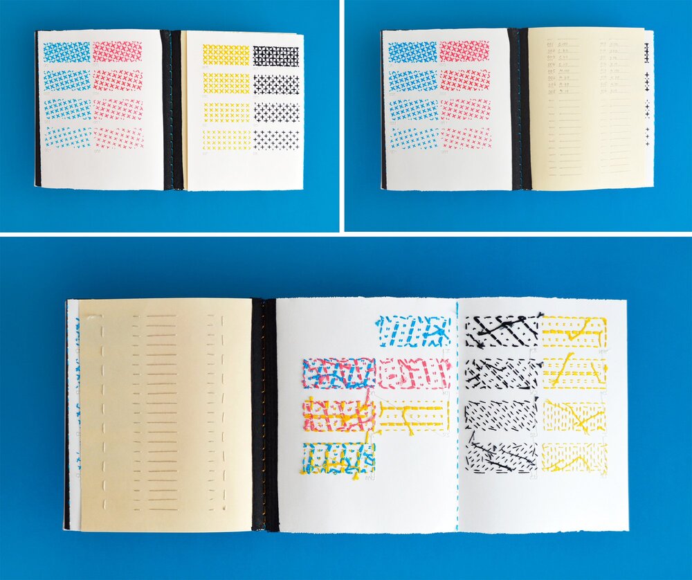 Nakış ve kanaviçe, günümüzde her sanatçının kendi tekniği ve odaklandığı tema doğrultusunda değişime uğrattığı yöntemler haline geldi. Evelin Kasikov da bu sanatçılardan biri. XXXX Swatchbook isimli çalışmasıyla ses getiren Kasikov, bu projesinde CMYK baskının tüm değişkenlerini tek bir mürekkep damlası olmadan keşfediyor.