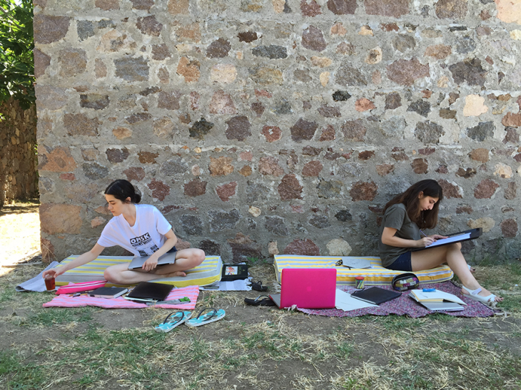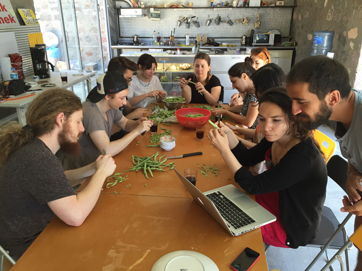 36.cısına katıldığım Yahşibey Tasarım Çalışmaları‘nın yürütücülüğü gıda aktivisti Defne Koryürek ve MSGSÜ-Grafik Tasarım Bölüm Başkanı Prof. Ayşegül İzer tarafından yapıldı. 15 gün aynı çatı altında yaşadığım arkadaşlarımla İstanbul’a döndüğümüzde eşe dosta anlatacağımız bir sürü güzel anı yaşadık. Yemeğimizi, temizliğimizi kendimiz yaptığımız proje evinde müşterek bir hayat nasıl yaşanır, bizzat deneyimledik. Her tabağa eşit yemek koyup, tencere dibinde kalanları da ziyan olmasın diye birlikte sıyırdık. Haftada bir gelen çöp aracının peşinden koşup, ‘akşama ne yesek’ sorusunu ‘dolapta bozulmaya başlayan ne kaldı?’ diye sorgulayarak ve değiştirerek hiçbir şeyi ziyan etmeden yaşamayı öğrendik.