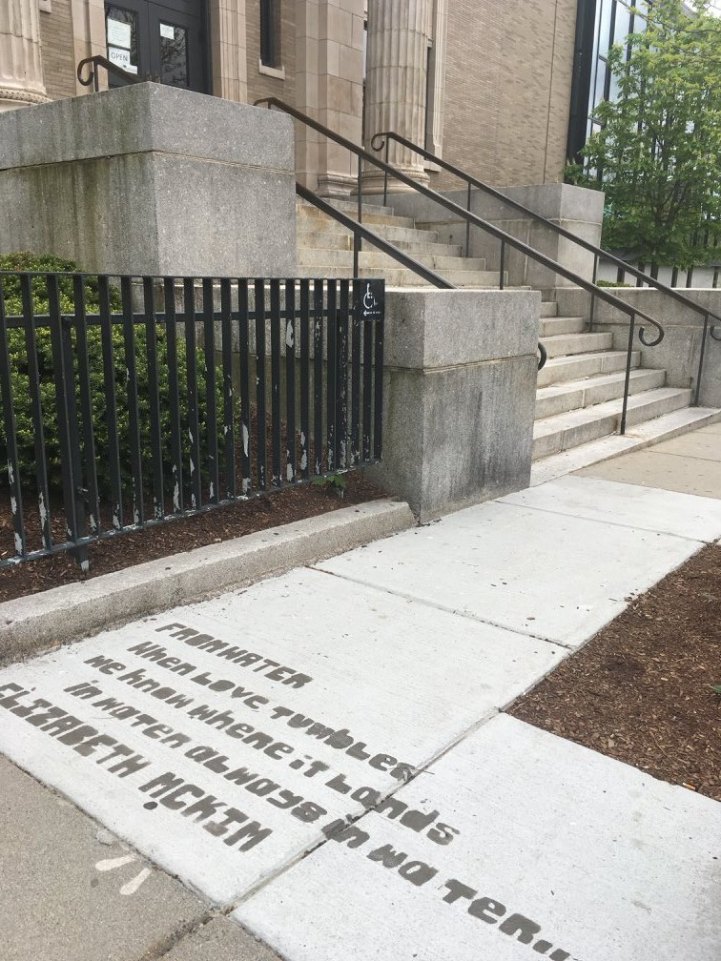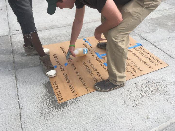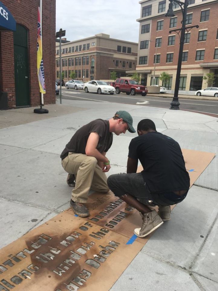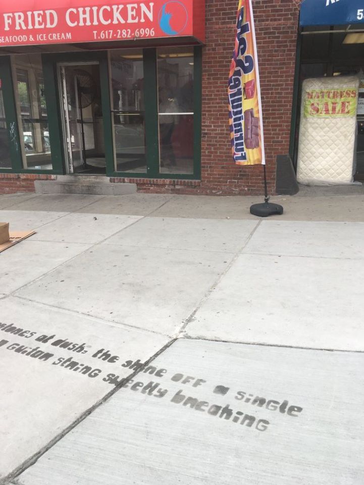 Her bir dörtlük ve uyak, yerel sokak sanatçıları tarafından şablonlarla (stencil) birlikte kaldırımlara aktarıldı. Sanatçılar, doğada çözünebilen, su geçirmez sprey boyalarla Boston halkının yağmur başlayınca gözlerine su kaçmasını engellemek için başlarını aşağı eğdiklerinde ayaklarının altında güzel bir sürprizle karşılaşmasına vesile oldu.
