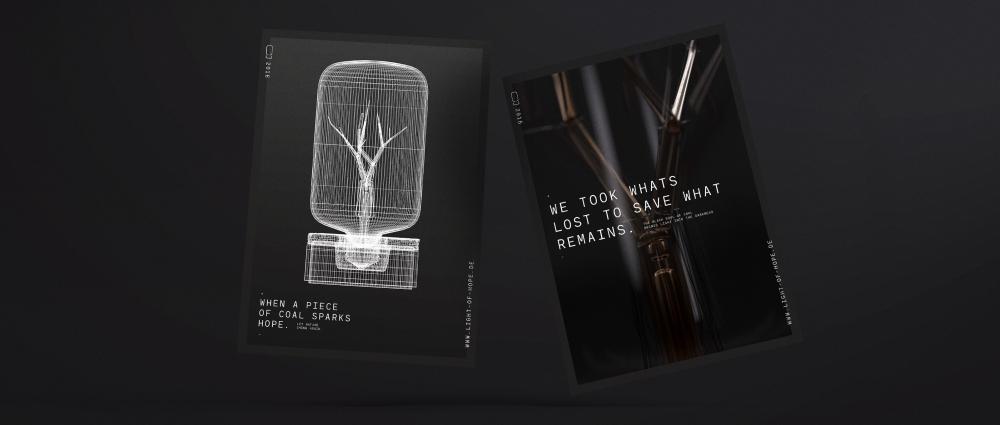 İnsanlar, her yıl 90 bin km2 yağmur ormanını yakarak yok ediyor. Geleceğimiz için ölümcül sonuçları olabilecek bu yangınlardan geriye yalnızca kömür ve kül kalıntıları kalıyor. Light of Hope’un (umut ışığı) yaratıcı ekibi bu süreci bir tasarıma dönüştürmüş ve yanmış ormandaki kömür kalıntılarından bir karbon filaman (elektrik ampullerinden akım geçtiğinde akkor duruma gelen ince iletken tel) yaratmış. Böylece insanın doğaya olan acımasızlığını hatırlatan zarif bir lamba tasarımı ortaya çıkmış.